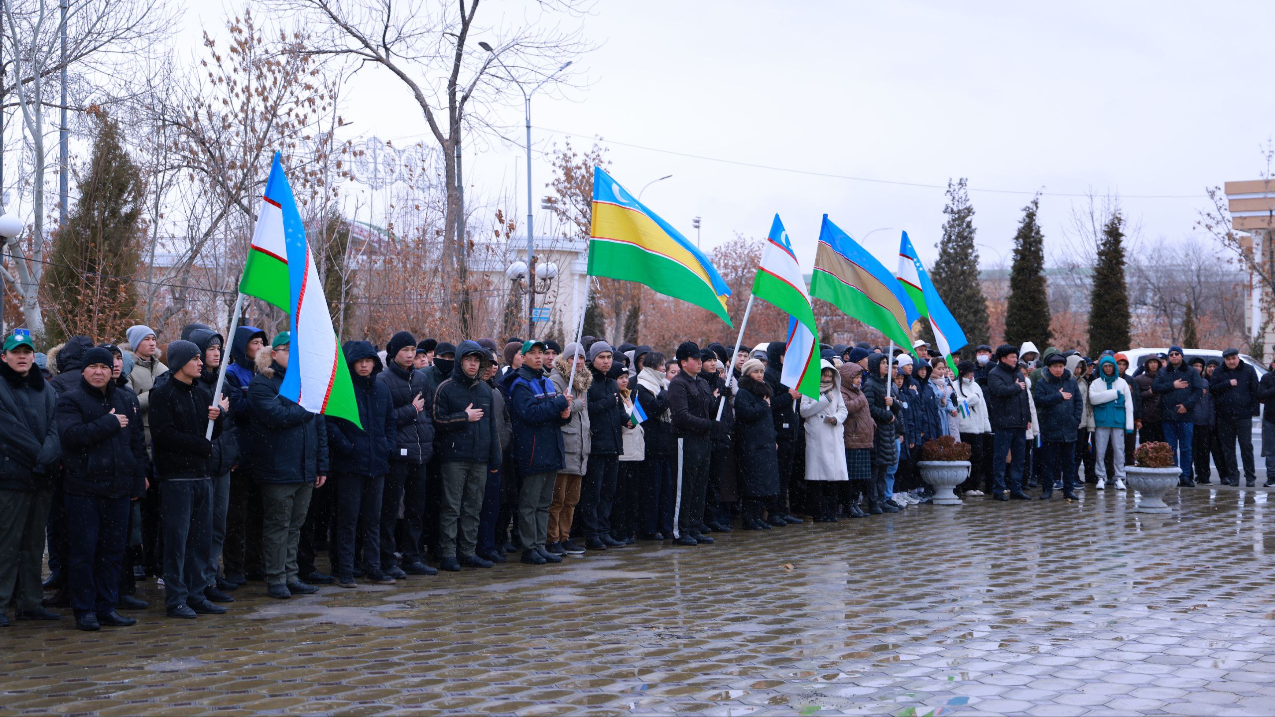 Búgin Nókis qalasınıń orayında ornatılǵan Ózbekstan hám Qaraqalpaqstan Respublikalarınıń mámleketlik bayraqları janında «Qaraqalpaqstan Respublikasınıń mámleketlik bayraǵı haqqında»ǵı Nızamı qabıl etilgenine 33 jıl tolıwı múnásibeti menen bayram ilaji bolıp ótti.